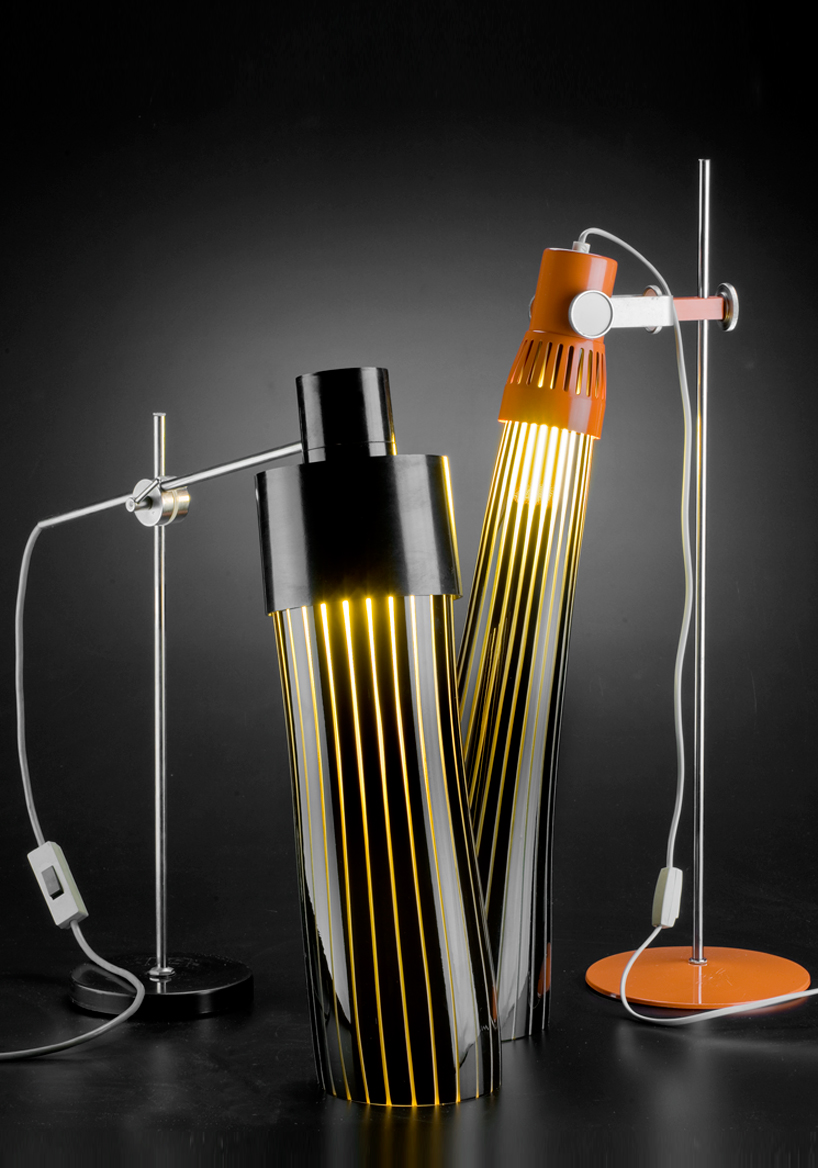 'light' utilizes old lamps from the 1970s, where they are rebuilt to be supported by a glass structure. the illusion of light becoming glass and glass becoming light